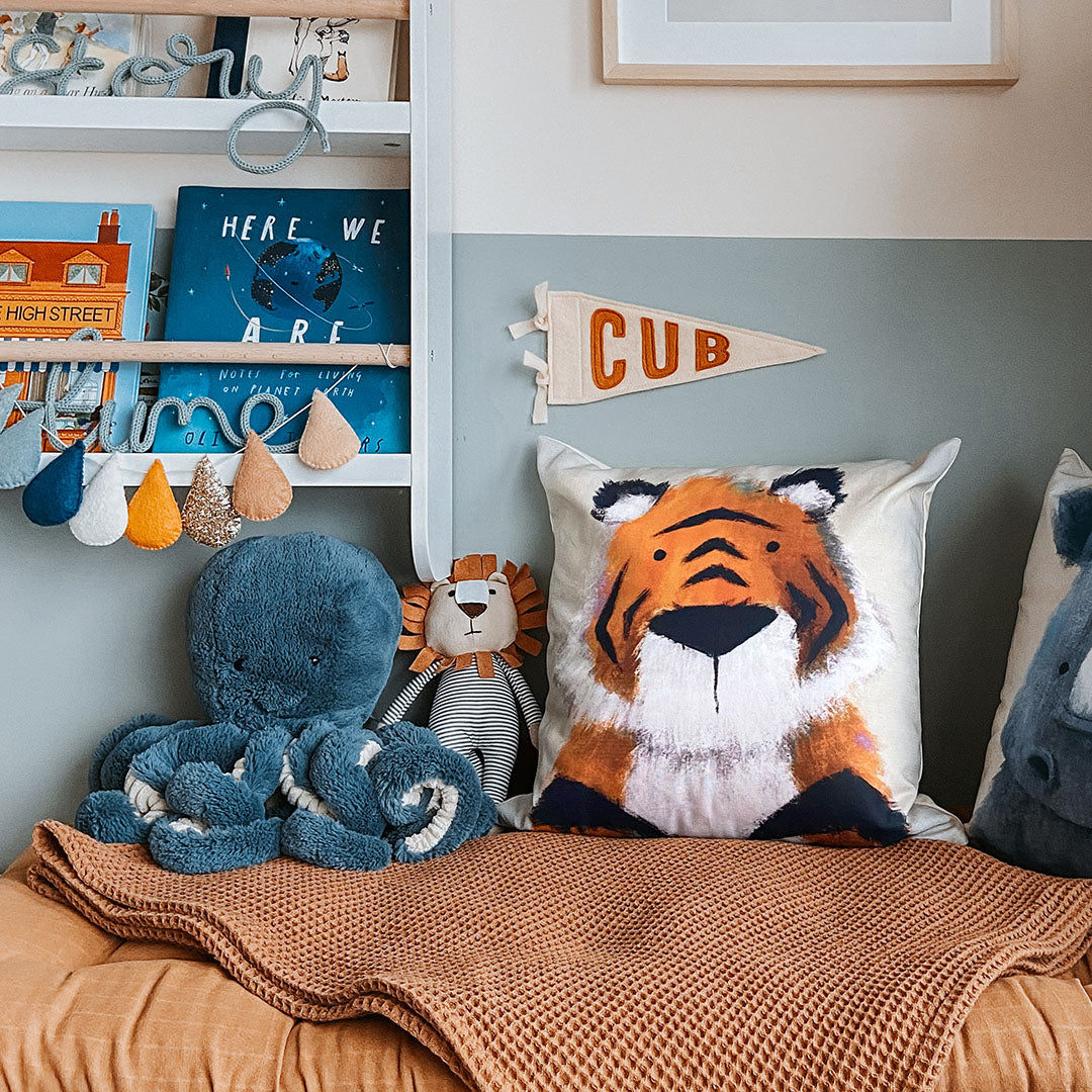 Our jungle cushion covers feature majestic tigers, cuddly pandas and roaming rhinos and are the perfect accompaniment to our jungle nursery prints.